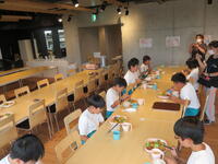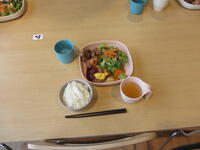 夕食は、きれいな食堂で唐揚げやハンバーグを食べました。