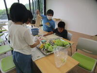 午前は、はいき野菜を使ったスタンプでマイバックづくりをしました。