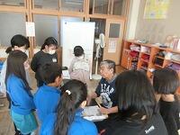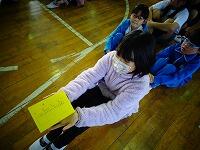 この日、オープンタイムにふれあい広場で全児童が集まり、「給食集会」が行われました。4人の先生が役割分担して寸劇を行いました。みんな興味津々、女の子が卵を食べると体の具合が悪くなること、野菜が嫌いで食べられないこと、などを聞いて、食べてはいけないものとちゃんと食べたほうがよいものを区別する話合いをしました。話合いは、いつものとおり縦割り班で行い、班長がみんなの前でまとめを発表しました。みんな、よく話し合って、食物アレルギーのことについてよく分かりましたね。