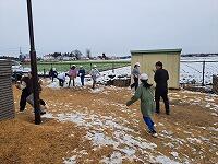 この日は、前日に降り積もった雪のため1時間遅れの始業でした。学校に来てみると、まだ残っている雪を見て、子供たちはおおはしゃぎ、雪合戦をしたり雪だるまを作ったりしました。かぜをひかないよう、遊んだ後はよく温まりましょう。
