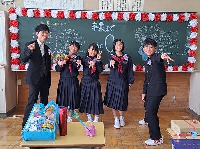 この日、離任式が行われました。7人の先生方が異動、退職されました。一人一人のあいさつを聞いたり、アーチを作ってお見送りをしたりしました。本校を去る先生方、これまでのご尽力ありがとうございました。新しい職場でのご活躍をお祈りしています。