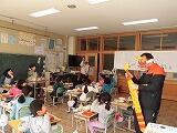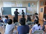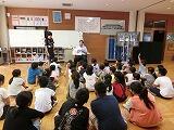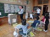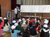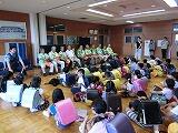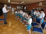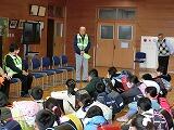 今日は交通少年団総会を行いました。交通安全協会と駐在所から2名の方をお招きしました。登下校中の交通事故が増えているというお話がありました。周りの状況に注意して安全に登下校できるようにしていきたいです。