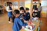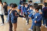 今日はおおみや幼児教育センターの子どもたちが、小学校を知るため見学に来ました。1・2年生と昔遊びをして楽しみました。1・2年生も先輩として、いろいろと教えてあげることができました。