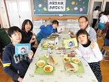 今日は郷山会のみなさんに4・5年生が太鼓を教えていただきました。その後、お誕生給食で一緒に給食を食べて、みなみっ子タイムでも一緒に遊んでいただきました。今日は天気が悪かったので、なかよし班ごとに室内でカードゲームをしました。郷山会のみなさま、ありがとうございました。