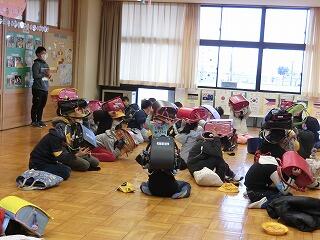 今日は予告なしで緊急地震速報を流し、とっさの対応が取れるか訓練をしました。放送が流れると、少し考えたあとにランドセルで頭を守る姿勢を取ることができました。災害はいつ起こるか分からないので、備えておきたいですね。