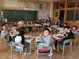 今日は今年度最後の給食でした。楽しくおしゃべりをしながら、おいしくいただきました。みんないい顔をしていました。調理場のみなさま、ありがとうございました。