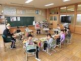 今日は学校の近くの福祉施設に訪問に行きました。全体会では低学年のダンスや高学年のよさこいを披露しました。その後学年ごとに分かれて折り紙やあやとりなどをして交流しました。施設の方々にも喜んでいただけました。