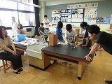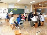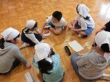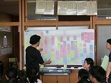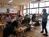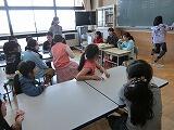 5~6年生は青栁さんを講師に、総合の学習で「国府南小のよさを伝えよう」に取り組んでいます。今日は、みんなで協力して作成する「校庭アート」のデザインについて、デザイナーの方も交えて話し合いました。