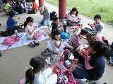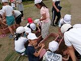 3年生が昔の生活を学んでいる一貫で、今日は七輪を使う体験をしました。火を起こして、おもちやマシュマロを焼いて食べました。子どもたちはとてもおいしそうに食べていました。