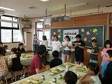 今日は栄養士の先生にお越しいただき、3・4年生と5年生が食に関する指導を行いました。給食にはどんな栄養素が含まれているのか確認し、バランスよく食べることの大切さについてお話していただきました。