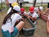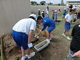 今日は緑を守り隊で綿の種をまきました。なかよし班に分かれて、5・6年生を中心に種まきをしました。その後、草取りをしました。短時間でしたが、一生懸命取り組んだのできれいになりました。