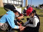 文化クラブはリバーシブルコースター作り、スポーツクラブはドッジボビーを楽しんでいました。4年生はまだ家庭科を習っていないので、糸通しに苦戦していました。