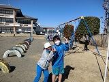 今日は昨日に引き続き風の強い一日でしたが、6年生と遊べるのもあとわずかなので、鬼ごっこをしたりブランコをしたりと、とても楽しそうでした。