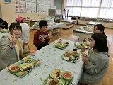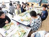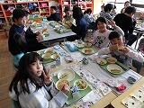 6年生が校長先生と一緒に給食を食べる、「お別れ給食」を行いました。楽しくお話をしながら、校長室で会食しました。 6年生が学校に来るのもあと7日です。