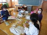5年生が家庭科で「たまごサンド」を作りました。卵は時間を変えてゆでて、固さを調べました。マヨネーズで味付けをして、おいしくできました。片付けまでバッチリです。