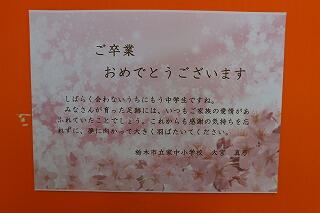 今日は卒業式でした。外は雨模様でしたが、7人の卒業生は晴れ晴れと巣立っていきました。在校生も心をこめて送り出すことができました。卒業生のみなさん、中学校へいっても頑張ってください。