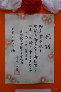 卒業式にいただいた祝詞及び祝電を載せさせていただきます。
