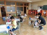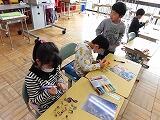 5時間目の授業の様子です。3年生は図工でのこぎりを使って切った木材に色を付けていました。1年生は音楽で鍵盤ハーモニカのきらきら星を練習していました。みんな頑張っています。