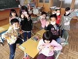 6年生が1・2年生と一緒に給食を食べました。卒業まで残りわずかとなり、たくさん思い出を作りたいと計画してくれました。昼休みも一緒に遊んでいました。