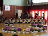 郷山会のみなさんをお招きして、今年度最後の太鼓練習を行いました。郷山会のみなさんがサプライズで国庁太鼓を披露してくださいました。大迫力の演奏を全校で聞かせていただきました。