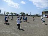 今日の休み時間は1・2年生がドッヂボールをして遊んでいたところに、他の学年がどんどん参加し、みんなで楽しく遊んでいました。野球や一輪車も人気です。
