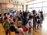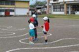今日は初めての児童朝会でした。なかよし班に分かれて自己紹介をしてから、へびおにをして遊びました。これからなかよし班で活動することがたくさんあります。楽しみです。