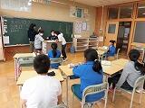 昨日から東陽中生が職場体験に来ています。小学校の授業を見学し、一緒に給食を食べたり遊んだりして活動しました。将来の夢に向かって頑張ってほしいです。