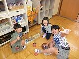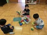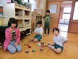 今日は雨の一日ですが、子どもたちは室内でブロック遊びやメンコ、だるまさんが転んだなどをして楽しく遊んでいました。