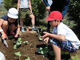 『ふれあいグリーンキャンペーン」に応募し、あじさいの苗木が寄贈されました。職員と子どもたちで校庭に植えました。大きくなってきれいなあじさいが咲くのが楽しみです。