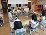今日は梅雨らしい天気で子どもたちは外で遊ぶことができませんが、室内でも学年問わず仲良く過ごしていました。昨日習った辞書引きをしている子もいました。