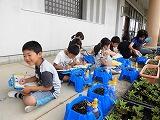 3年生が理科でチョウの研究をするために、キャベツを植えました。青虫が育ってくれるのが楽しみです。