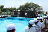 今日はプール開きでした。みんなできれいにしたプールには水が入り、子どもたちは早く泳ぎたいようでした。みんなでちかいのことばを読んで、安全に気を付けてプール活動ができるよう約束しました。