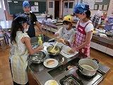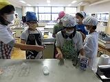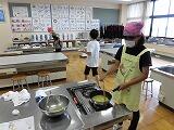 今日は6年生が調理実習で「スクランブルエッグ」を作りました。軽量スプーンで塩や牛乳を計り、卵は好みの固さに仕上げました。おいしくできて大満足でした。