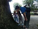 昨日1年生が『ぎんなん山』に探検に行きました。大きないちょうの木に聴診器を当てて、木の音を聞いたり、葉っぱを観察したりしました。