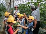 2年生が町探検に行きました。きゅうり農家さんではビニールハウスを見学させていただき、試食もさせていただきました。1日に3千本も収穫するそうです。その後、学校前のお店でも見学させていただきました。ありがとうございました。