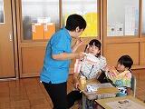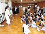 学校歯科医の先生と歯科衛生士さんをお招きして、1年生のむし歯ゼロ教室を実施しました。染め出しを行い、6歳臼歯を守るためにどのように歯みがきをすればよいのか勉強しました。