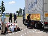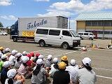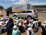 今日はトラック協会のみなさんにお越しいただき、交通安全教室を行いました。校庭に横断歩道を作り、トラックの巻き込み事故や死角、飛び出しの危険性について見せていただきました。子どもたちは事故の怖さを改めて認識し、安全への意識を高めることができました。