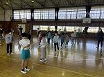 今日は職員で体力アップチャレンジ研修を行いました。子どもたちの苦手な柔軟性や跳躍力を楽しく身に付けるために、体育の導入で行う活動を職員で実際に練習しました。