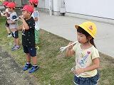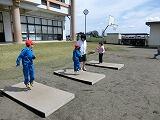 地震と火事を想定した避難訓練を行いました。いつ起こるかわからない災害に備えて真剣に取り組みました。
