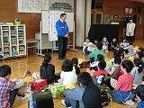 今日は田村駐在所の平野さんを講師にお迎えして、交通安全教室を行いました。始めに自転車の安全な乗り方についてのDVDを見て、その後、自転車の安全な乗り方と横断歩道の正しい渡り方のお話を聞きました。