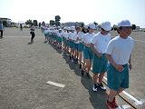 今日は、運動会総合練習です。入場行進の仕方や隊形を確認しました。1年生も腕を大きく振って元気よく歩くことができました。校舎の3階にはスローガンが貼られ、運動会に向けて盛り上がっています。