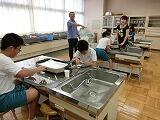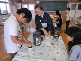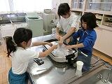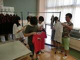 6年生が家庭科で洗濯をしました。石けん液を作ってから、つまみ洗いや押し洗いなど丁寧に洗いました。手洗いは大変でしたが、きれいになりました。