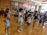 今日の児童朝会は6年生が中心になって、「じゃんけん列車」をしました。1年生が先頭で列車を作り、じゃんけんをして負けると後ろにつながります。最初のチャンピオンになった児童は大喜びでした。