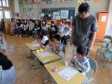 東陽中から、2年生(本校の卒業生)3名が、職場体験学習で来てくれています。子どもたちは授業で勉強を教えてもらったり、昼休みに一緒に遊んだり、とても楽しく過ごしています。