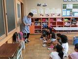 毎週水曜日はお話会の日です。今日はどんな本に出会えるのか、子どもたちはとても楽しみにしています。1・2年生はなぞなぞ絵本の読み聞かせで、大喜びでした。