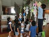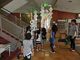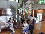 1年生が七夕の飾り付けをしていました。折り紙ですてきな作品を作ることができました。