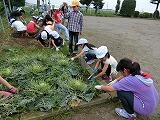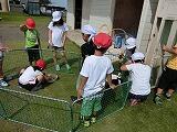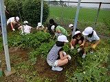 今日のオープンタイムは学級園の除草でした。育てているかばちゃやさつまいもの周りに、たくさん草が生えてしまったのでみんなできれいにしました。