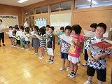 国府地区安全協会長の埴生さんと田村駐在所の平野さんをお迎えして、交通少年団総会を行いました。全員で交通安全誓いの言葉を述べて、安全に生活できるよう確認しました。