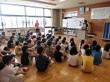 県民の日に合わせて、放送委員会の児童が中心となって集会を行いました。栃木市に伝わる「綾川五郎次の石」というお話しの読み聞かせを聞いて、栃木県にまつわるクイズに挑戦しました。