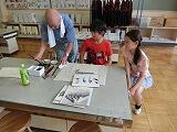1・2年生が学校探検をしました。先輩の2年生が校舎内を案内しました。初めて行く他の学年の教室では「こんな勉強をするんだ~!」と発見があったようです。